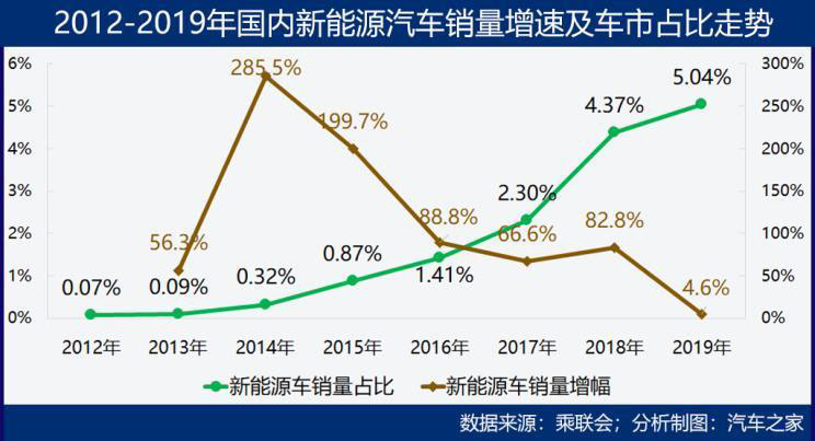 新能源汽車(chē)2019年下半年的銷(xiāo)量,可以說(shuō)是無(wú)補(bǔ)貼時(shí)代預(yù)演,預(yù)演的結(jié)果是,新能源汽車(chē)市場(chǎng)接受度不足。從銷(xiāo)量看,2019年國(guó)內(nèi)新能源乘用車(chē)的銷(xiāo)售占比雖然首次超過(guò)了5%,但是如果將商用車(chē)也算在內(nèi),根據(jù)中汽協(xié)的數(shù)據(jù),這一比重將降為4.7%,因?yàn)樾履茉瓷逃密?chē)2019年的表現(xiàn)比乘用車(chē)還不如。而此前,國(guó)家關(guān)于這一比重的目標(biāo)是到2020年達(dá)到10%,我們預(yù)計(jì),完成的可能性很小。