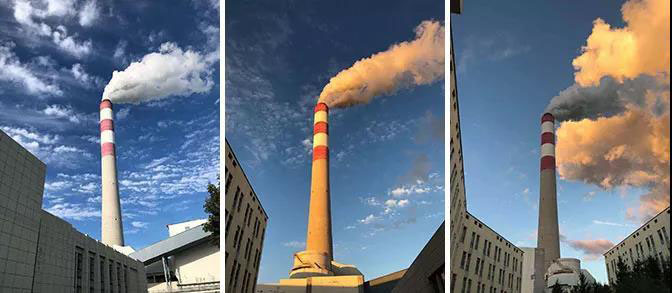 不同地方環(huán)保機(jī)構(gòu)對(duì)數(shù)點(diǎn)濕煙羽的看法和治理要求并不統(tǒng)一,有的將“白色煙羽”“灰色煙羽”“藍(lán)色煙羽”統(tǒng)稱為“有色煙羽”,有的則認(rèn)為治理濕煙羽只是針對(duì)“消白”。由于認(rèn)識(shí)上不一致,所以提出“觀測(cè)法”和“排煙溫度法”不同的判定依據(jù)缺乏嚴(yán)謹(jǐn)性。如,“觀測(cè)法”要求觀察者在觀測(cè)條件下未見明顯有色煙羽即可視為有色煙羽消除,但在執(zhí)法中存在一定干擾因素,如,光線、觀察角度、觀察者主觀判斷等;而“排煙溫度法”針對(duì)不同控制措施、季節(jié)等提出排煙溫度限值,通過煙氣在線監(jiān)測(cè)系統(tǒng)(CEMS)可監(jiān)管排煙溫度,但“顏色”“控溫”與“環(huán)境質(zhì)量”不存在對(duì)應(yīng)關(guān)系,因此也無法有效反映濕煙羽控制效果。圖2中的3張圖是我在內(nèi)蒙古一個(gè)電廠所攝,電廠環(huán)保設(shè)施穩(wěn)定運(yùn)行,全部滿足環(huán)保要求,但煙流在不同光線、不同時(shí)間、不同角度下呈現(xiàn)不同顏色。實(shí)際上生活常識(shí)告訴我們,即便是云有時(shí)是“白云”有些則是“烏云”有時(shí)更是“彩霞”。