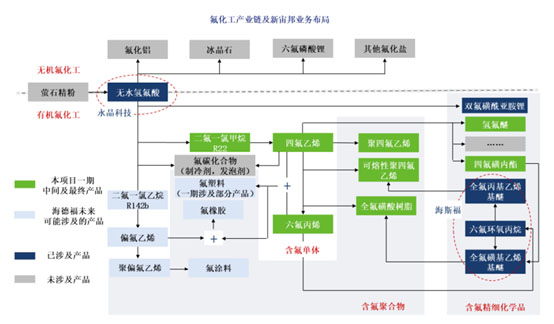 新宙邦在公告中重點解釋了本次募集資金投資項目。其中,海德福高性能氟材料項目(一期)屬于有機氟化學(xué)品價值鏈的上游延伸,是公司實施氟化工一體化戰(zhàn)略的重要措施。