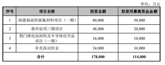 由此看來,本次募集資金投資項目中,首當其沖的海德福高性能氟材料項目(一期)也是在推進之前的項目進展。