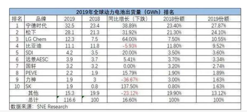 不久前,韓國(guó)SNE Research發(fā)布了2019年全球鋰離子動(dòng)力電池出貨量榜單,從整體數(shù)據(jù)來(lái)看,去年全球整體鋰離子動(dòng)力電池總出貨量為116.6GWh,同比增長(zhǎng)16.6%,并且在前10名中,中國(guó)電池廠商占據(jù)了5個(gè)席位,相較2018年減少了2個(gè)。