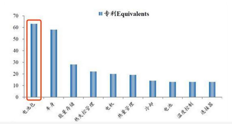 特斯拉為了避免硬碰硬,所以通過調(diào)動有限資源集中攻堅,在新能源車最核心的三電領(lǐng)域(電池、電機(jī)、電控)上與傳統(tǒng)車企形成了差異化競爭,在電池系統(tǒng)相關(guān)專利占比超過了60%,其中又以電池為主。