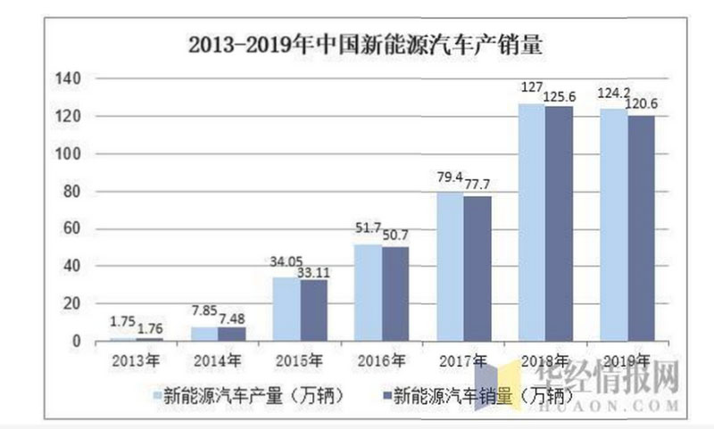 自2012年國務(wù)院發(fā)布實施《節(jié)能與新能源汽車產(chǎn)業(yè)發(fā)展規(guī)劃(2012-2020年)》以來,我國新能源汽車呈現(xiàn)快速發(fā)展態(tài)勢,產(chǎn)銷量逐年迅速增長。2019年,受補貼退坡影響,疊加二手新能源車的低價沖擊,我國新能源汽車產(chǎn)銷量出現(xiàn)首次下降,其中2019年新能源汽車產(chǎn)量為124.2萬輛,同比下降2.3%;新能源汽車銷量為120.6萬輛,同比下降4.0%。但中長期來看,隨著退坡政策影響的邊際減弱及國家對新能源汽車鼓勵政策的退出,新能源汽車產(chǎn)業(yè)向好趨勢不變。