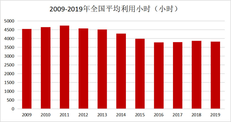 以下是2009-2019年全國(guó)各類(lèi)型利用小時(shí)情況: