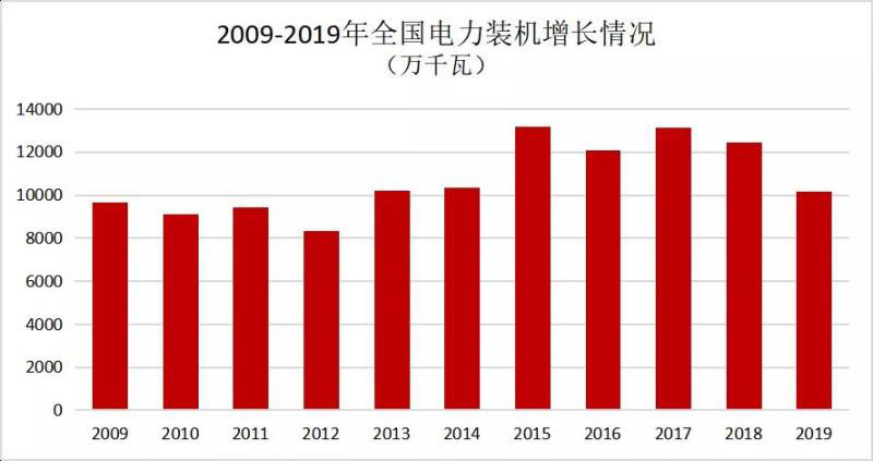 2009-2019年全國(guó)分類(lèi)型電源新增裝機(jī)情況如下: