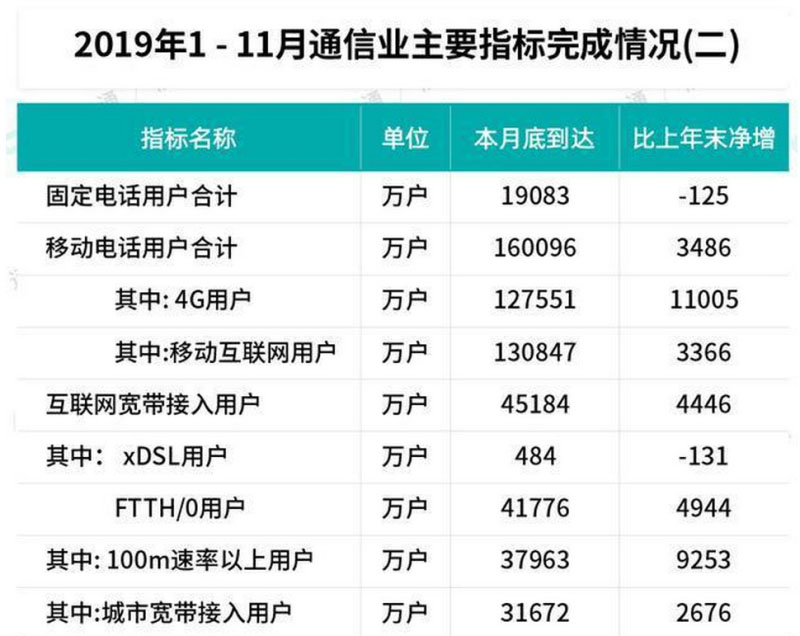 三大運(yùn)營商的移動電話用戶已經(jīng)超過16億戶,遠(yuǎn)超全國14億的人口總量。實(shí)際上,移動電話用戶突破人口規(guī)模限制后,仍然保持了多年的持續(xù)正向增長。按照工業(yè)和信息化部公布的最新數(shù)據(jù),截至2019年11月份,移動電話普及率已經(jīng)高達(dá)114.7部/百人,這個(gè)數(shù)據(jù)在2019年又增長了2.5部/百人。