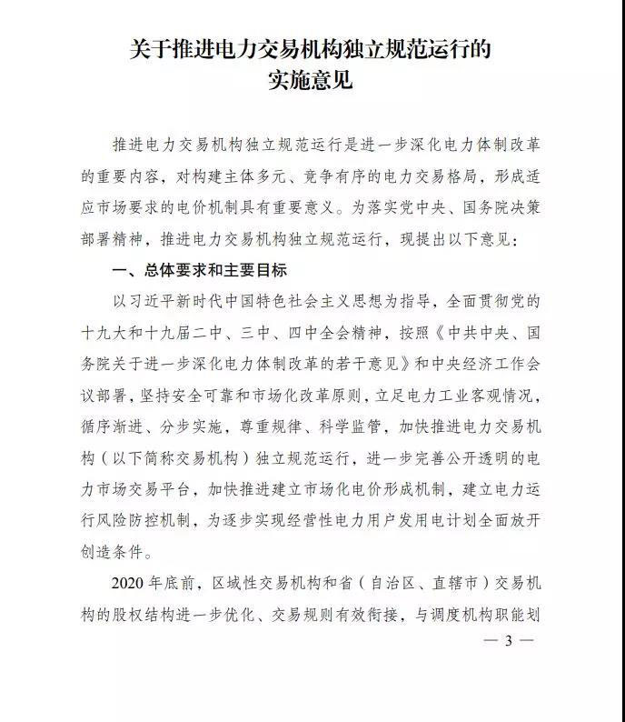 國家發(fā)展改革委 國家能源局印發(fā)《關(guān)于推進(jìn)電力交易機(jī)構(gòu)獨(dú)立規(guī)范運(yùn)行的實(shí)施意見》的通知
