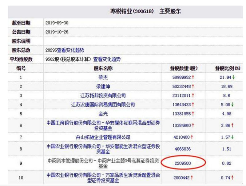根據(jù)中國(guó)經(jīng)濟(jì)網(wǎng)記者查詢(xún),截至2019年三季度末,中閱資本管理股份公司-中閱產(chǎn)業(yè)主題3號(hào)私募證券投資基金出現(xiàn)在寒銳鈷業(yè)的前十大股東中,該私募基金持有寒銳鈷業(yè)220.95萬(wàn)股,持股比例為0.82%,為寒銳鈷業(yè)第九大股東。