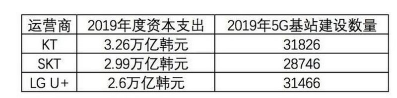 事實(shí)上,比較韓國(guó)三大運(yùn)營(yíng)商2019年度總資本支出和建設(shè)完成的5G基站總數(shù),也能看出較大差異。