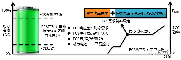 功率跟隨式控制:燃料電池按照自身功率輸出能力,時(shí)刻跟隨整車需求功率變化,保證整車動(dòng)力性。功率跟隨式控制適用于匹配較小容量動(dòng)力電池的乘用車。