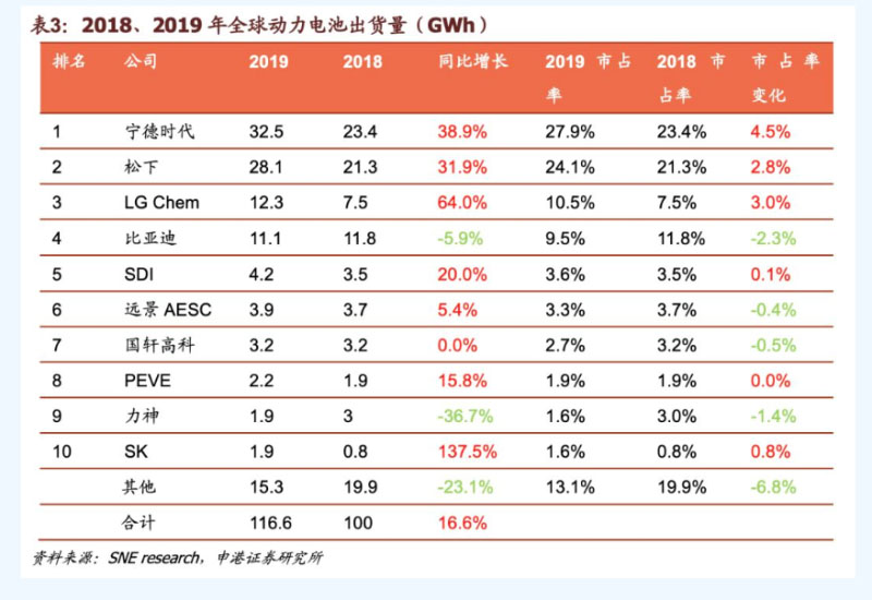 公司作為動力鋰電池龍頭企業(yè),2019全年動力電池總裝機量32.5GWh,同比增長38.9%,全球市占率達到27.9%,同比提升4.5pct,并以顯著優(yōu)勢領(lǐng)先。隨著產(chǎn)能規(guī)模不斷擴大,下游客戶不斷拓展加固,公司出貨水平將進一步高速增長。