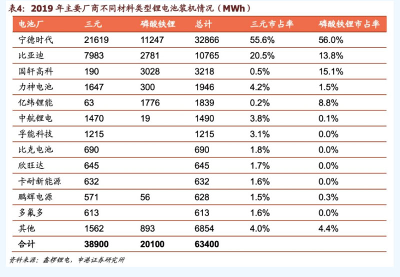 2019年寧德時代裝機量32GWh,占國內(nèi)總裝機52%,其中三元21GWh,磷酸鐵鋰11GWh,均處于國內(nèi)第一位。寧德時代在三元、磷酸鐵鋰兩種材料體系上的絕對領(lǐng)先,凸顯公司作為國內(nèi)電池龍頭絕對技術(shù)領(lǐng)先和廣闊的市場能力。