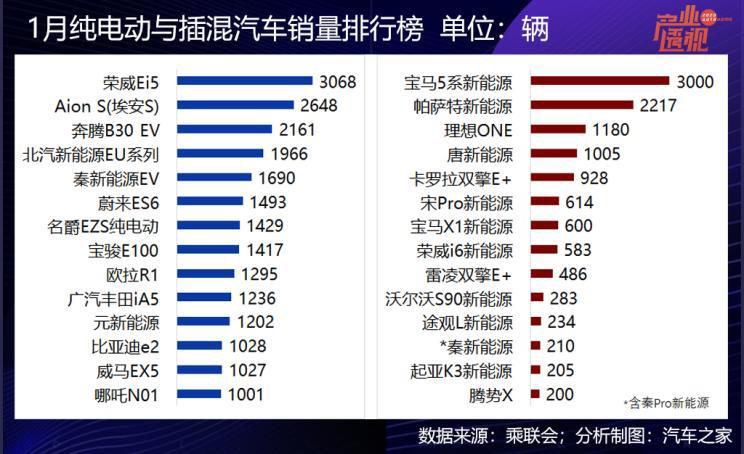 值得注意的是造車新勢力,蔚來汽車、理想汽車、威馬汽車、合眾新能源四家新勢力1月份的批發(fā)銷量均超過了1000輛。蔚來汽車以蔚來ES6為主,銷售1493輛,蔚來ES8批發(fā)銷售105輛。理想汽車交付1180輛理想ONE,威馬EX5銷售1027輛,合眾新能源的哪吒N01銷售1001輛。另外,華晨寶馬、上汽大眾、廣汽豐田三家合資車企進榜,廣汽豐田的iA5銷售1236輛,雷凌雙擎E+銷售486輛。合資車企在2020年的動作會加快,苗頭已現。