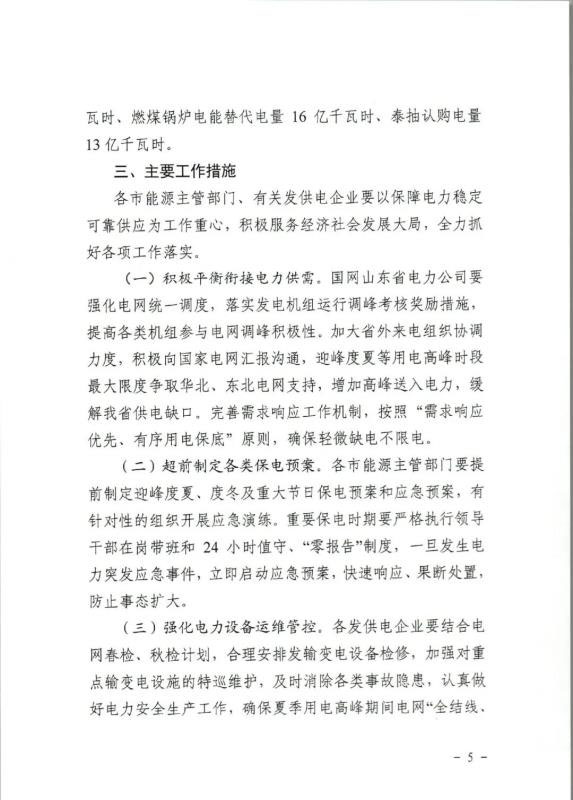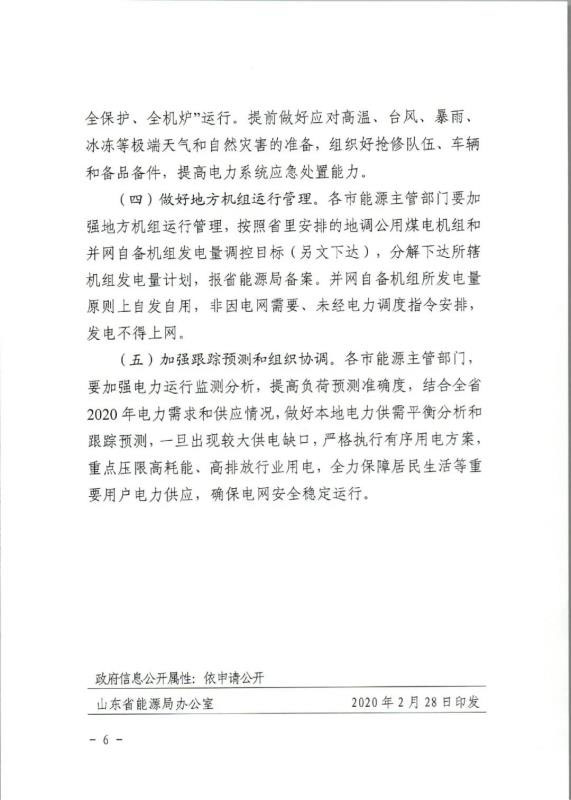省內發(fā)電方面,2019年,山東省新投產核電機組125萬千瓦、新能源機組519萬千瓦,投運應急調峰儲備電源 365萬千瓦。