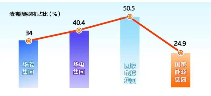 從清潔能源裝機(jī)占比來看,2019年,國(guó)家電投集團(tuán)清潔能源裝機(jī)占比50.5%;光伏發(fā)電裝機(jī)1929萬千瓦,繼續(xù)保持世界第一。華電集團(tuán)清潔能源裝機(jī)占比達(dá)到40.4%,同比提高0.71個(gè)百分點(diǎn)。華能集團(tuán)結(jié)構(gòu)調(diào)整取得新突破,低碳清潔能源裝機(jī)超過6100萬千瓦,裝機(jī)比重超過34%。國(guó)家能源集團(tuán)非化石能源裝機(jī)占比為24.9%,同比提高0.5個(gè)百分點(diǎn)。(大唐集團(tuán)數(shù)據(jù)略)