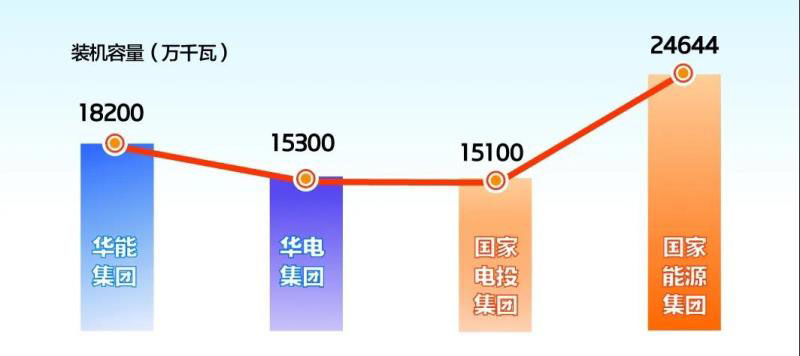 截至2019年底,國(guó)家能源集團(tuán)全年新增電力裝機(jī)757萬千瓦,裝機(jī)容量達(dá)24644萬千瓦。華能集團(tuán)裝機(jī)總量達(dá)到18200萬千瓦。華電集團(tuán)裝機(jī)容量為15300萬千瓦。國(guó)家電投集團(tuán)裝機(jī)規(guī)模達(dá)15100萬千瓦。(大唐集團(tuán)數(shù)據(jù)略)