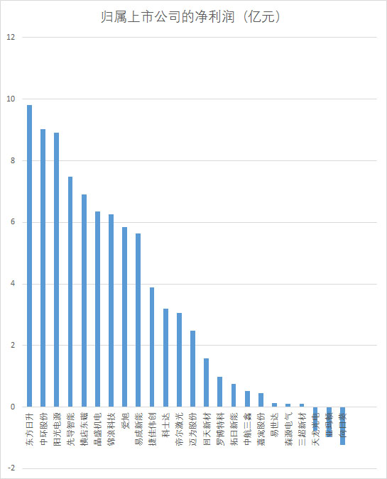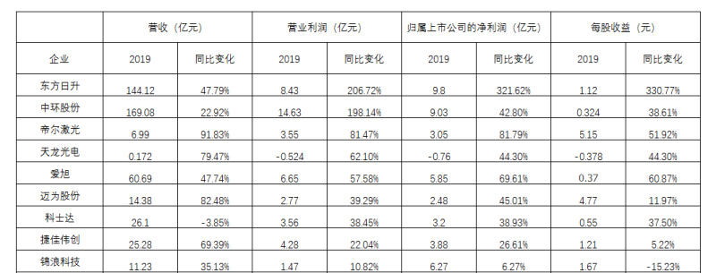 在已公布業(yè)績(jī)快報(bào)的企業(yè)中,營(yíng)收超過(guò)百億的企業(yè)有中環(huán)股份、東方日升及陽(yáng)光電源。