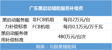 根據(jù)此前《南方區(qū)域并網(wǎng)發(fā)電廠輔助服務管理實施細則(修訂稿)》中的定義,黑啟動服務費分為能力費和使用費,其中廣東地區(qū)的能力費補償標準為2萬元/臺或0.1萬元/萬千瓦,使用費補償標準為480萬元/臺次。