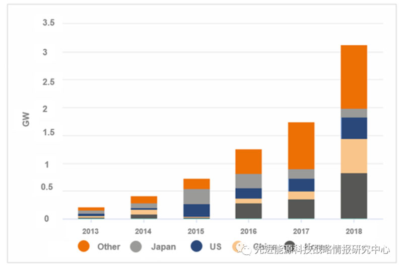 圖1 全球儲能新增裝機(jī)容量(單位:吉瓦)