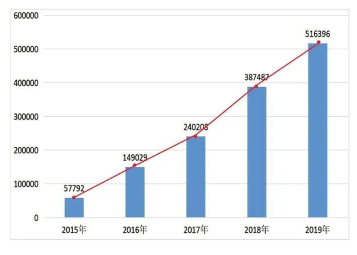 2015-2019年中國公共充電站保有量(單位:座)