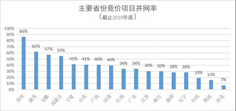遼寧因?yàn)樾碌母們r(jià)項(xiàng)目只有分布式光伏,所以28%的并網(wǎng)率可以反映出,東北的分布式項(xiàng)目很難吸引投資企業(yè)的關(guān)注。而山西、陜西和河北的并網(wǎng)率都不足20%,意味著這三個(gè)省的管理模式在2020年有待進(jìn)一步提升和改進(jìn)。