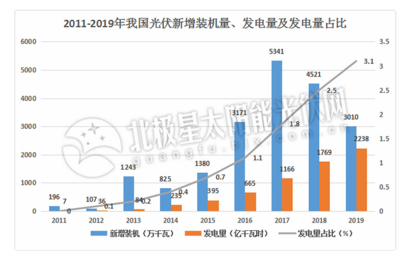 在太陽能發(fā)電領(lǐng)域,發(fā)展趨勢同樣向喜。截止2019年底,我國太陽能發(fā)電累計裝機容量已達20468萬千瓦時,其中光伏發(fā)電20426萬千瓦;太陽能發(fā)電量也是一路高歌猛進,2019年全國太陽能發(fā)電量2238億千瓦時,同比增長27%,占全國總發(fā)電量的3.1%, 不得不說我國的太陽能發(fā)電產(chǎn)業(yè)發(fā)展速度確實飛快,但與之相比,我國太陽能光伏發(fā)電的利用率就顯得不甚樂觀了。