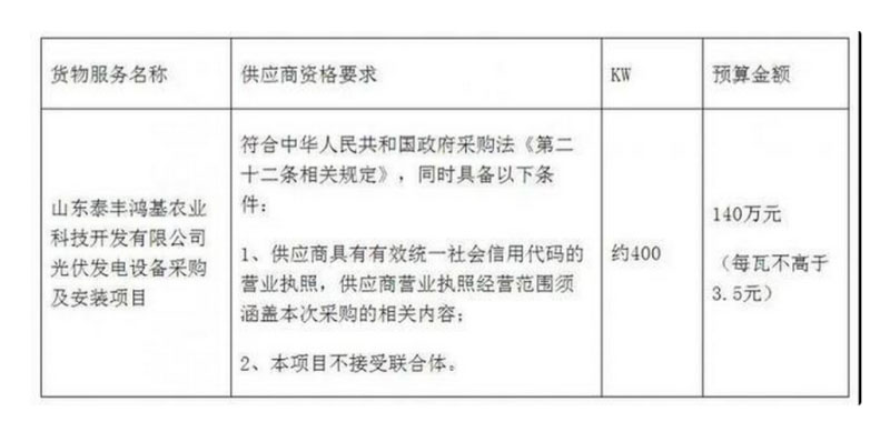 二、最高限價3.5元/W 山東泰豐農(nóng)業(yè)光伏發(fā)電設(shè)備采購及安裝項(xiàng)目