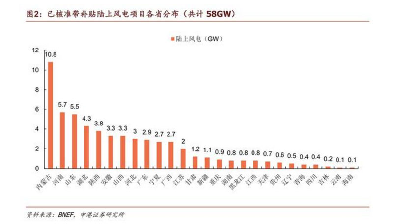 搶裝潮將把2020年市場(chǎng)推向一個(gè)高點(diǎn),然而我們認(rèn)為2021年之后行業(yè)發(fā)展空間仍然巨大。本次風(fēng)電搶裝和以往相比最大的不同,在于搶裝項(xiàng)目中除了帶補(bǔ)貼存量已核準(zhǔn)項(xiàng)目,還有配套特高壓建設(shè)的風(fēng)電大基地項(xiàng)目。風(fēng)電大基地項(xiàng)目的建設(shè)進(jìn)度,在很大程度上取決于相配套的特高壓項(xiàng)目的建設(shè)情況和投運(yùn)時(shí)間,為其消納提供保障。由于項(xiàng)目總裝機(jī)容量大、規(guī)模效益突出,極大提升平價(jià)時(shí)代市場(chǎng)需求,拉動(dòng)風(fēng)機(jī)出貨量。2019年,由于內(nèi)蒙古從紅色預(yù)警減弱為橙色,多個(gè)風(fēng)電大基地項(xiàng)目得以開(kāi)工。除了內(nèi)蒙,青海、河北等地的風(fēng)電大基地亦在加速推進(jìn),所有在建及計(jì)劃內(nèi)風(fēng)電大基地總規(guī)模近40GW。