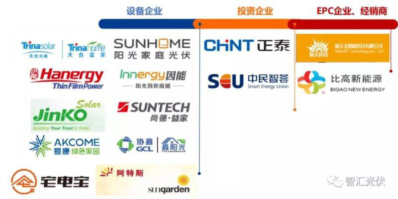 隨著531政策的出臺(tái),2018年下半年大多數(shù)戶用品牌紛紛離場(chǎng)。下圖是2017年部分活躍的戶用光伏品牌。