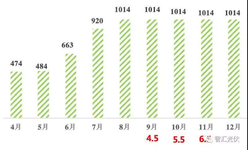 假設(shè)恰好在12月15日時(shí),國(guó)家能源局公布11月底,戶用的規(guī)模超過預(yù)期的6GW指標(biāo),則12月31日前并網(wǎng)的戶用項(xiàng)目均可獲得補(bǔ)貼。