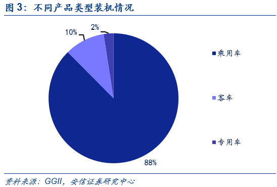 從產(chǎn)品類型看:2月乘用車電池裝機量為0.52GWh,占比88%,環(huán)比上升15Pcts;客車電池裝機量為0.06GWh,占比10%;專用車電池裝機量為0.014GWh,占比2%。