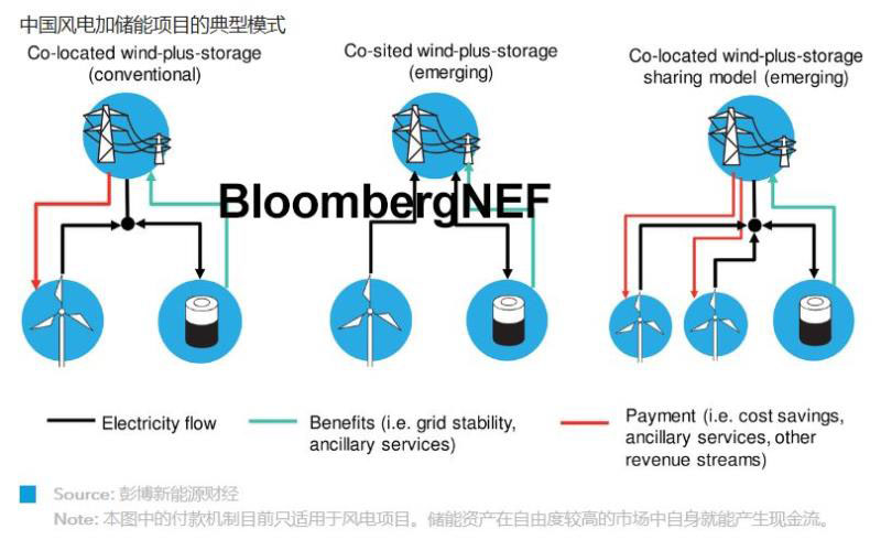 風電+儲能領域浮現(xiàn)了多種商業(yè)模式。目前,多數(shù)風電+儲能項目是在同一接入點接入電網。在一些較新的模式中,風電和儲能是分別并網的。某些情況下,儲能系統(tǒng)由多個可再生能源項目共同使用,這樣的模式之下,多個項目開發(fā)商可分攤儲能成本及風險,并提高儲能資產利用率。