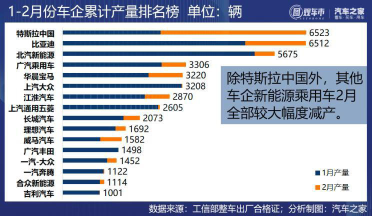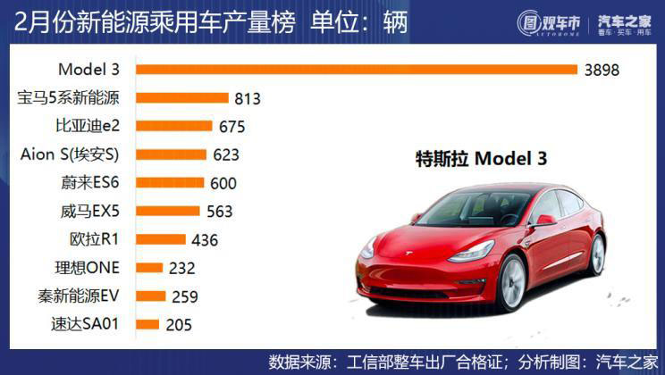 2、特斯拉中國(guó)是唯一一家在2月產(chǎn)量較1月增長(zhǎng)的車(chē)企,Model 3累計(jì)生產(chǎn)6523輛,為前兩月最高產(chǎn)量車(chē)型;