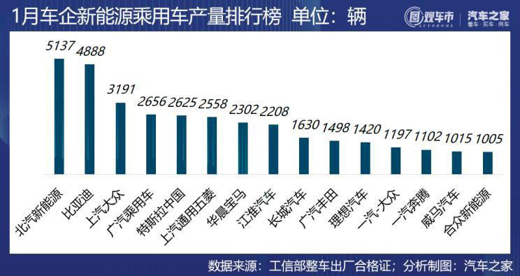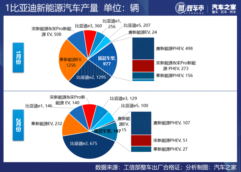 在此特殊時(shí)期,去看汽車(chē)的產(chǎn)量有些殘忍,受疫情防控影響,2月份汽車(chē)產(chǎn)業(yè)開(kāi)工率普遍不足,產(chǎn)量大跌是再正常不過(guò)的。但歷史是真實(shí)發(fā)生的,數(shù)據(jù)也是一種記錄。2月國(guó)內(nèi)新能源乘用車(chē)產(chǎn)量?jī)H1.13萬(wàn)輛,除特斯拉中國(guó)外,所有車(chē)企產(chǎn)出都較1月大幅下滑,有的甚至零產(chǎn)量。今年前兩個(gè)月,國(guó)內(nèi)累計(jì)產(chǎn)出新能源乘用車(chē)5.4萬(wàn)輛,其中純電動(dòng)車(chē)4.05萬(wàn)輛,插電式混合動(dòng)力車(chē)1.35萬(wàn)輛。本期圖觀車(chē)市不做評(píng)論,只為記錄、傳遞。