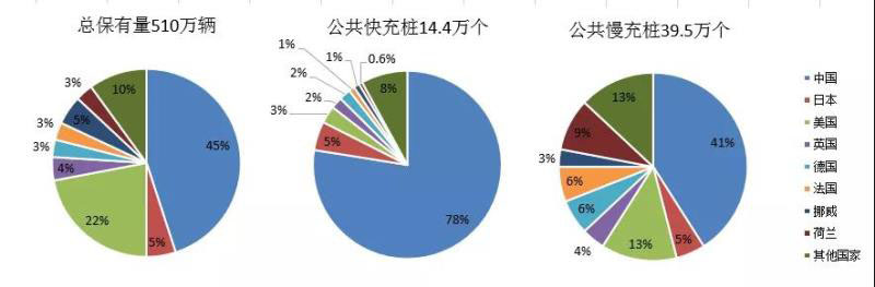 圖4 2018年全球電動汽車和公共充電樁各國分布情況