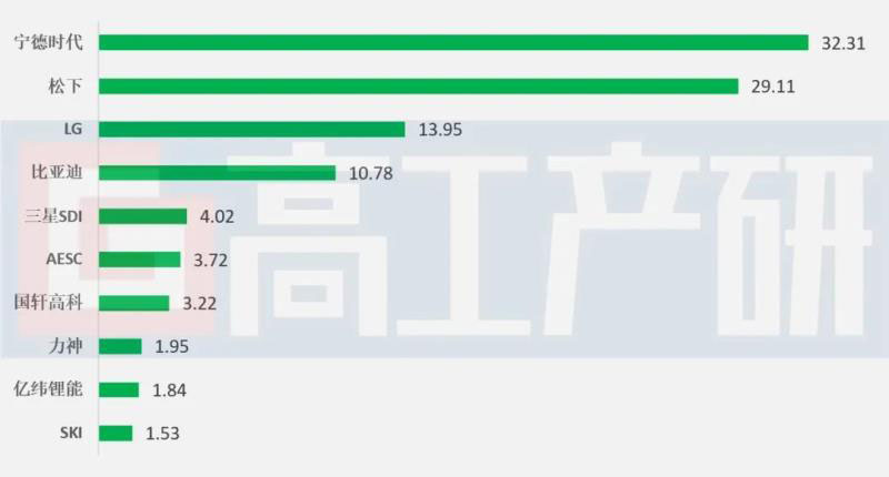 2019年全球動(dòng)力電池裝機(jī)量TOP10企業(yè)(GWh)