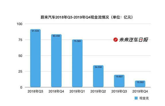 蔚來汽車2018年Q3-2019年Q4現(xiàn)金流情況 制圖:未來汽車日報