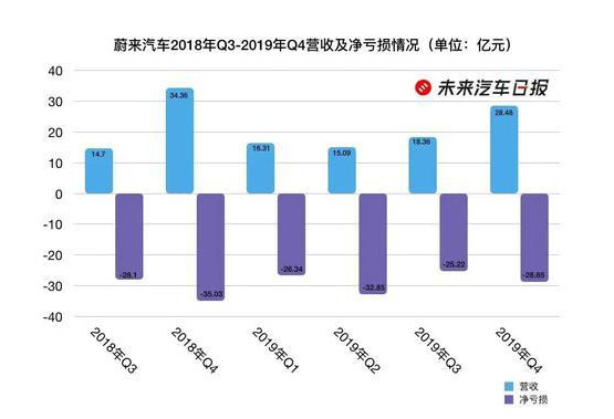蔚來汽車2018年Q3-2019年Q4營收及凈虧損情況 制圖:未來汽車日報