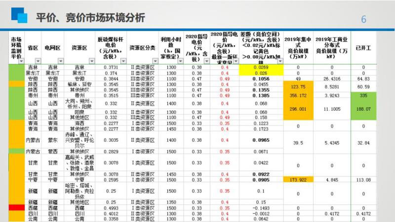 在平價(jià)、競(jìng)價(jià)市場(chǎng)環(huán)境分析,投資企業(yè)應(yīng)根據(jù)市場(chǎng)環(huán)境監(jiān)測(cè)平價(jià)的顏色來(lái)判定在做前期工作的項(xiàng)目在申報(bào)是否有可能。土地面積充足的西北地區(qū)均為橙色地區(qū),橙色地區(qū)新增規(guī)模取決于電網(wǎng)?;菪墙ㄗh,在補(bǔ)貼在0.3元以內(nèi)綠色區(qū)域,如遼寧、吉林、黑龍江建議做平價(jià)項(xiàng)目;補(bǔ)貼在0.3-0.8的地區(qū)建議做競(jìng)價(jià)項(xiàng)目,同時(shí)應(yīng)考慮地區(qū)2019年的實(shí)際開工情況;補(bǔ)貼大于0.8元的地區(qū),競(jìng)價(jià)項(xiàng)目可能非常激烈,要提早做一些工作。另外,惠星表示,競(jìng)價(jià)項(xiàng)目還應(yīng)考慮收購(gòu)小時(shí)數(shù)。