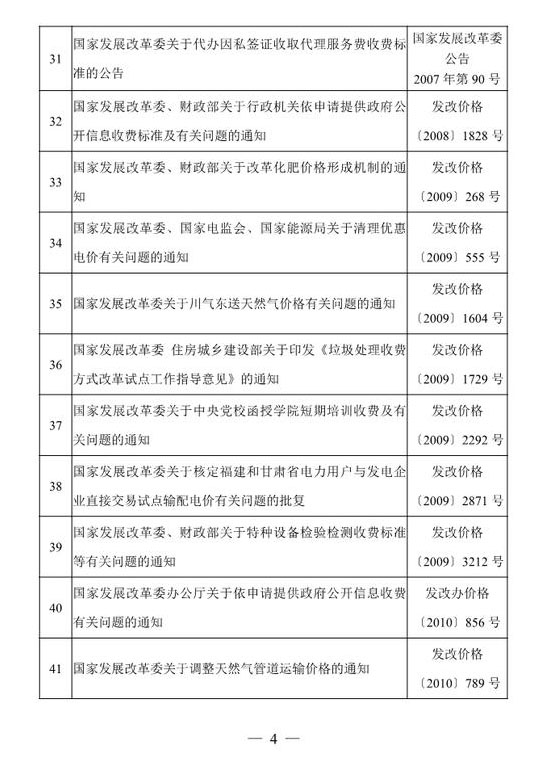國家發(fā)展改革委決定廢止的價格規(guī)范性文件目錄
