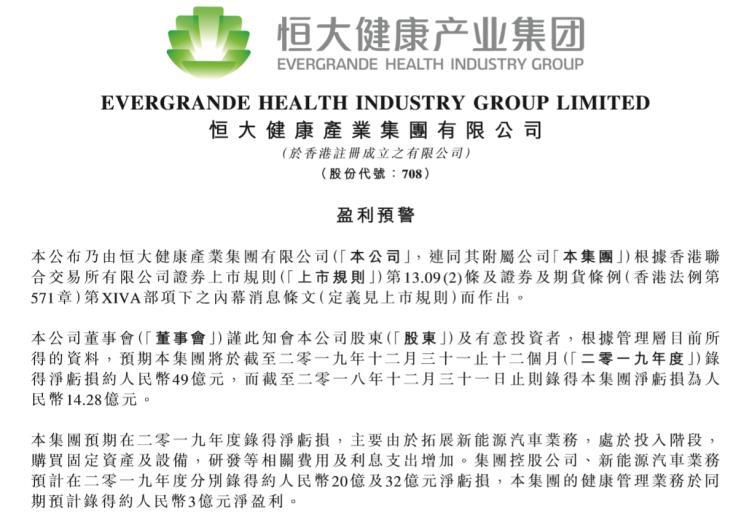 恒大健康表示,公司虧損主要是由于拓展新能源汽車業(yè)務(wù),該業(yè)務(wù)目前還處于投入階段,需購(gòu)買固定資產(chǎn)及設(shè)備,研發(fā)等相關(guān)費(fèi)用及利息支出增加。恒大健康預(yù)計(jì),集團(tuán)控股公司預(yù)計(jì)在2019年凈虧損20億元,新能源汽車業(yè)務(wù)的凈虧損或在32億元,公司的健康管理業(yè)務(wù)于同期預(yù)計(jì)凈盈利約為3億元。