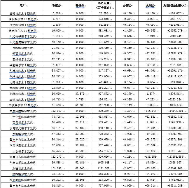 根據(jù)《國家能源局西北監(jiān)管局關(guān)于印發(fā)<西北區(qū)域發(fā)電廠并網(wǎng)運(yùn)行管理實(shí)施細(xì)則>及<西北區(qū)域并網(wǎng)發(fā)電廠輔助服務(wù)管理實(shí)施細(xì)則>的通知》(西北監(jiān)能市場〔2018〕66號(hào))規(guī)定,2019年10月份青海電網(wǎng)發(fā)電廠并網(wǎng)考核和輔助服務(wù)補(bǔ)償結(jié)果復(fù)核工作已完成,現(xiàn)予公布,請(qǐng)據(jù)此結(jié)算。