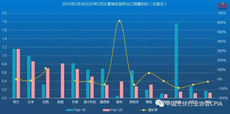 【智利】2月組件出口規(guī)模同比增長(zhǎng)616.9%。作為可再生能源投資的熱土,憑借低廉的勞動(dòng)力價(jià)格、豐富的光照資源(世界最好的輻照強(qiáng)度)以及良好的融資環(huán)境使光伏發(fā)電取得了巨大的優(yōu)勢(shì)。在智利的國(guó)家電力拍賣中,清潔能源可以利用價(jià)格優(yōu)勢(shì)擊敗化石能源,因此,智利政府提出了煤炭退役計(jì)劃,預(yù)計(jì)到2030年,太陽(yáng)能將成為智利主要的電力來(lái)源,覆蓋超過30%的國(guó)內(nèi)電力需求。此外,智利是第一個(gè)跟中國(guó)簽訂自由貿(mào)易協(xié)定的拉丁美洲國(guó)家,中國(guó)產(chǎn)品出口到智利97%沒有關(guān)稅,疊加該國(guó)有鼓勵(lì)光伏發(fā)展的政策,大大驅(qū)動(dòng)了光伏在智利的快速發(fā)展。智利國(guó)家電力協(xié)調(diào)局表示2019年本國(guó)太陽(yáng)能發(fā)電量7345GWh,占比9.4%,距離30%的目標(biāo)相差較大,因此未來(lái)發(fā)展空間依舊很大。根據(jù)公開資料顯示,智利要求曾前往中國(guó)、西班牙、法國(guó)、意大利、韓國(guó)或伊朗的船舶,所有船員必須在離開上述國(guó)家后通過14天的隔離檢疫,才能進(jìn)入智利。否則,他們不會(huì)收到港口的清關(guān)通知。如此看來(lái),對(duì)于智利的影響主要還是來(lái)自港口清關(guān)等物流方面的影響。1-2月該地區(qū)組件市場(chǎng)出口額占比前五的企業(yè)分別為東方日升(39.7%)、東方環(huán)晟(20.0%)、天合(18.3%)、晶澳(15.7%)、正泰(3.3%)。