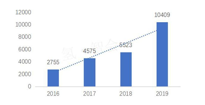 根據(jù)中國汽車工業(yè)協(xié)會最新公布數(shù)據(jù)統(tǒng)計,2019年中國共銷售2737輛燃料電池汽車,同比增長79%。從2016年到2019年,國內(nèi)燃料電池汽車銷量逐年增加。目前,國內(nèi)氫燃料電池汽車保有量達(dá)6165輛,已達(dá)成《節(jié)能與新能源汽車技術(shù)路線圖》中到2020年實現(xiàn)5000輛燃料電池汽車規(guī)模的階段性目標(biāo)。