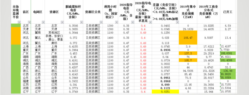 另外,從2019年光伏發(fā)電市場(chǎng)監(jiān)測(cè)情況來(lái)看,根據(jù)此前西北電力勘測(cè)設(shè)計(jì)院總圖所所長(zhǎng)惠星的演講資料,2019年僅有西藏被劃為紅色區(qū)域,除了2018年的紅色區(qū)域新疆、甘肅轉(zhuǎn)為橙色之外,綠色區(qū)域的覆蓋面積也大幅增加,2018年被劃為橙色區(qū)域的山東、內(nèi)蒙古、河北、福建、海南、重慶等均轉(zhuǎn)為綠色,這對(duì)于2020年的光伏項(xiàng)目發(fā)展也是一大利好。據(jù)了解,2019年光伏發(fā)電市場(chǎng)環(huán)境監(jiān)測(cè)評(píng)價(jià)結(jié)果還結(jié)合了競(jìng)價(jià)項(xiàng)目的完成情況。