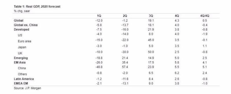如果沒有這次突如其來的疫情,根據(jù)過去五年的趨勢,2020年全球排放量將增加1%左右。但是,各國政府為應(yīng)對當(dāng)前疫情爆發(fā)而實行社交距離,大幅減少經(jīng)濟(jì)活動必將導(dǎo)致全球溫室氣體排放量下降。根據(jù)摩根大通(JP Morgan)對2020年各國GDP預(yù)測,如果2020年第三季度和第四季度全球經(jīng)濟(jì)復(fù)蘇,那么今年的全球排放量可能會從2019年的水平下降0.5%至2.2%。