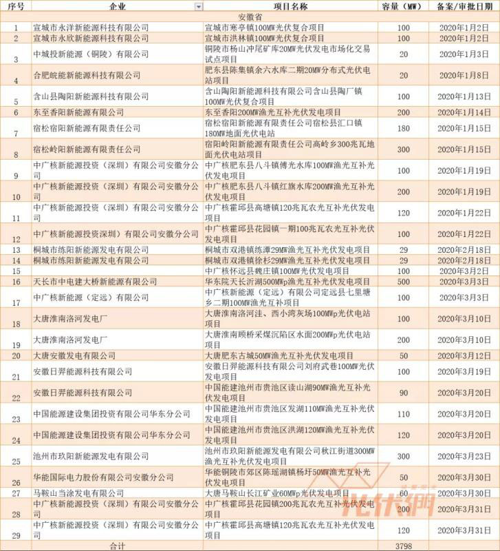 截止到目前,安徽省2020年備案的光伏項(xiàng)目已達(dá)3.8GW。