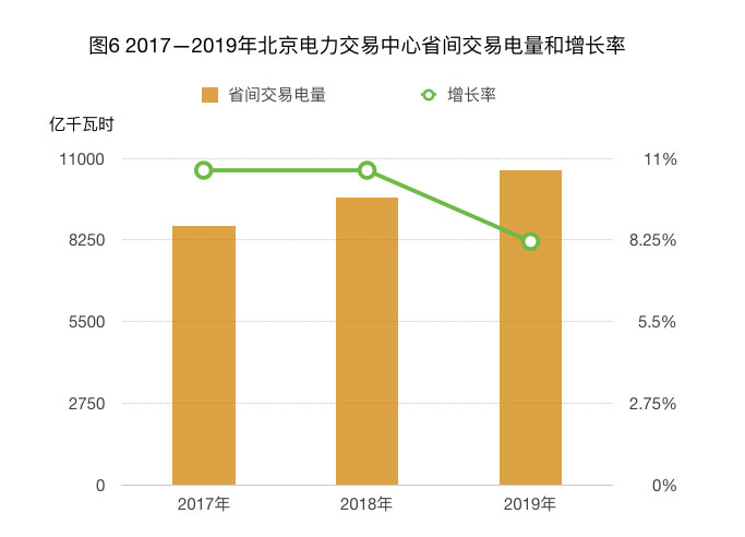 在跨區(qū)跨省電力市場中,省間電力直接交易電量增長迅速,如圖7所示,2019年達到10619億千瓦時。
