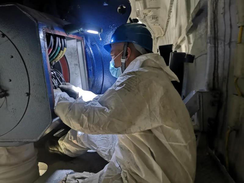 檢修員檢查發(fā)電機(jī)碳刷跟集電環(huán)(劉運(yùn)樓 攝)