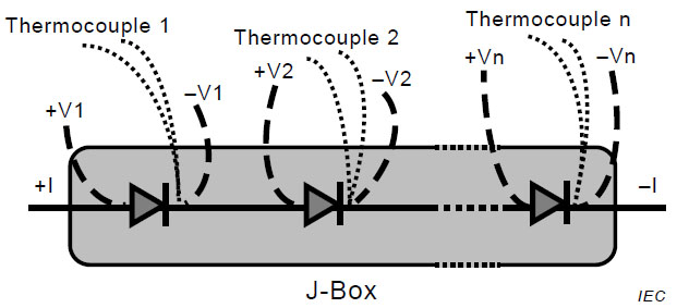 標(biāo)準(zhǔn)IEC 62979提供了一種測(cè)試方法來評(píng)估接線盒內(nèi)的旁路二極管是否容易發(fā)生熱逃逸現(xiàn)象,同時(shí)也從側(cè)面對(duì)接線盒的散熱能力提出了更高要求,以確保旁路二極管在從正向偏壓轉(zhuǎn)變成反向偏壓的過程中不會(huì)發(fā)生熱擊穿。